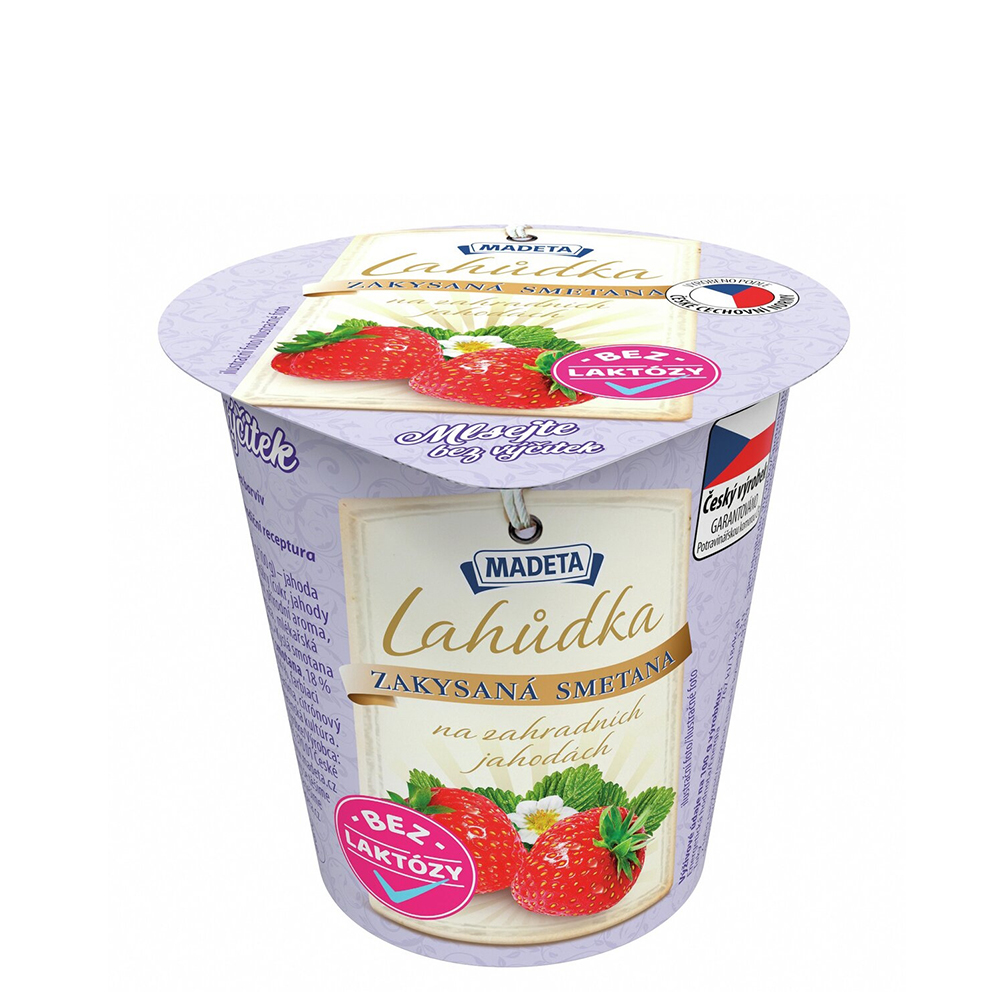 Lahůdka zakysaná smetana na zahradních jahodách bez laktózy |