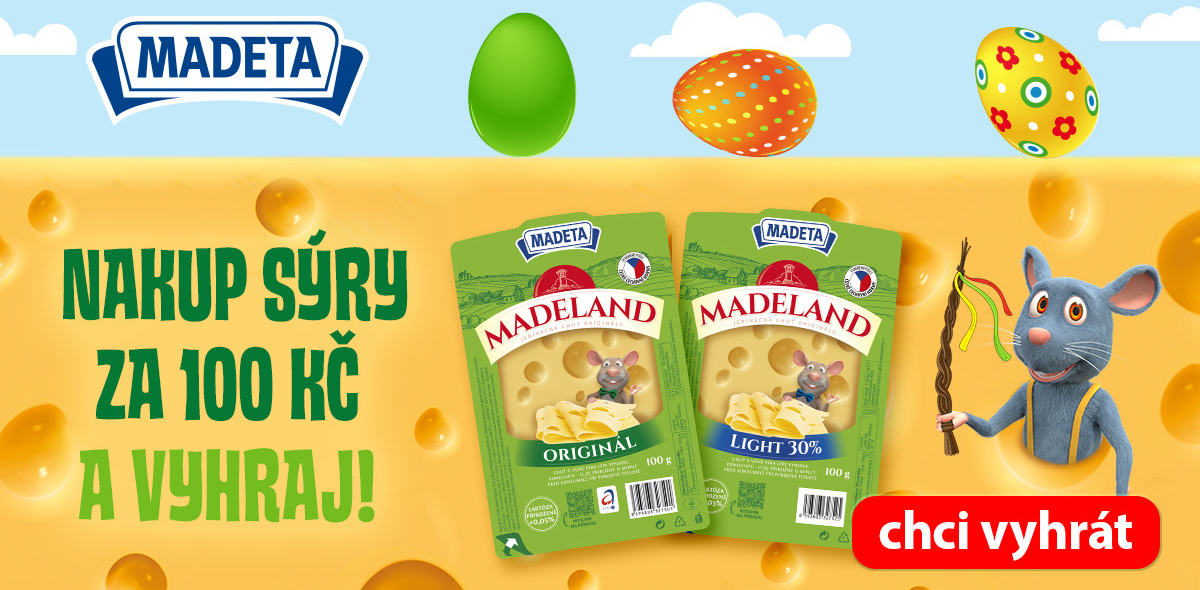 Nakup jakýkoliv ze sýrů Madeland, Sýrařův výběr, Jihočeská niva, Blaťácké zlato a Kamadet nebo jejich kombinaci v minimální hodnotě 100 Kč a schovej si účtenku. Od 11. 3. 2024 se registruj na www.syrovasoutez.cz a pak už jen vyčkej na slosování o hodnotné ceny!