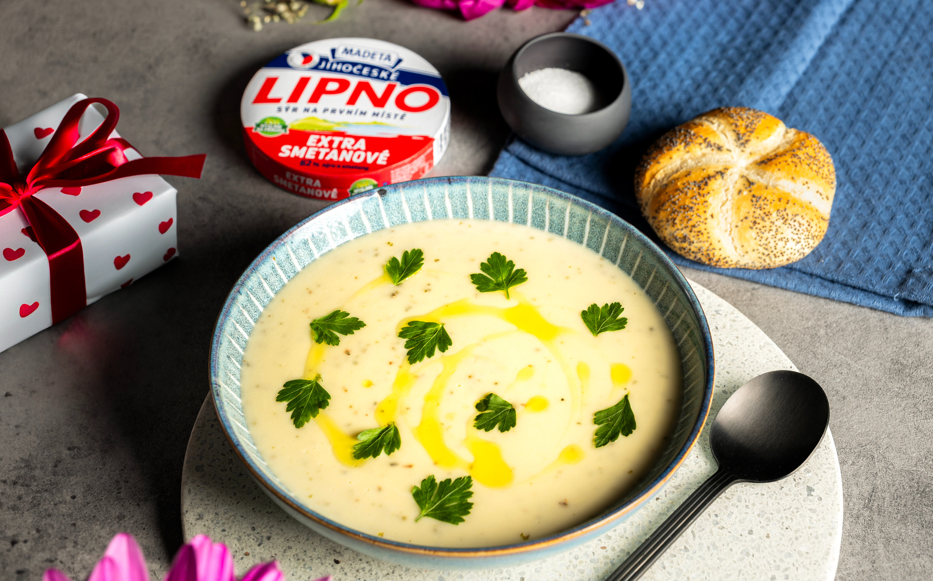 Na Jihočeském másle zesklovatíme nasekanou cibuli a přidáme na kostky nakrájené brambory. Zalijeme vývarem a vaříme doměkka. Vmícháme Jihočeské Lipno a necháme ho rozpustit. Polévku rozmixujeme dohladka, dochutíme solí, pepřem a majoránkou a posypeme petrželkou. Podáváme s pečivem.