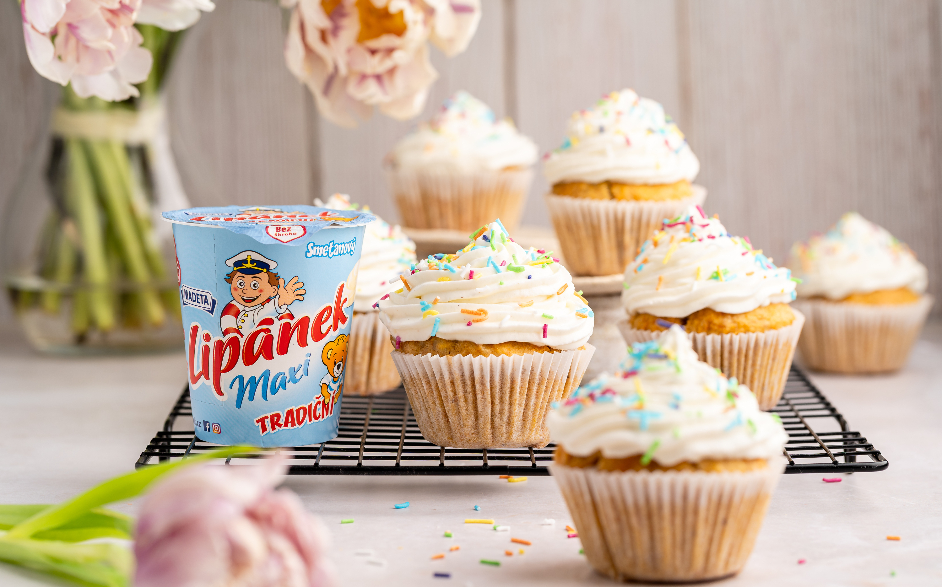 V míse vyšleháme vychlazenou smetanu do polotuha. Poté přidáme Lipánek a obě žervé. Přisypeme moučkový cukr a vanilkový cukr. Vše společně krátce vyšleháme do hladkého, nadýchaného krému. Šleháme jen tak dlouho, aby krém držel tvar. Hotový krém dáme alespoň na 20 minut do lednice ztuhnout. Poté ho přendáme do cukrářského sáčku a vychladlé cupcakes jím ozdobíme.