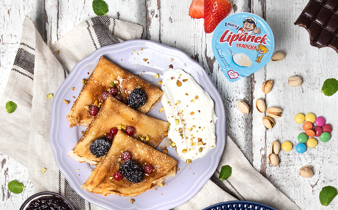 Kdo by neměl rád palačinky? Přidáme čerstvé ovoce a smetanového Lipánka, to je nebe v ústech.